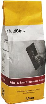 MultiGips FSA ist eine hochwertige Füll- und Spachtelmasse auf Weißzementbasis für mineralische Untergründe. Besonders geeignet zum Füllen und Schließen von Rissen, Fugen, Löchern und Schlitzen. MultiGips FSA ist auch für das Befestigen von losen Firstziegeln, Garten- und Abdeckplatten sowie als Reparatur- und Flächenspachtel für Haus und Garten bestens geeignet.