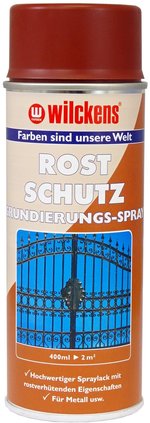 Wilckens Rostschutz-Grundierung ist ein hochwertiger Spraylack mit besonderen rostverhütenden Eigenschaften. Zum Lackieren von Metall, Eisen usw. Nicht für Aluminum und Zink geeignet. Zeigt nach dem Austrocknen eine gleichmäßige Oberfläche.